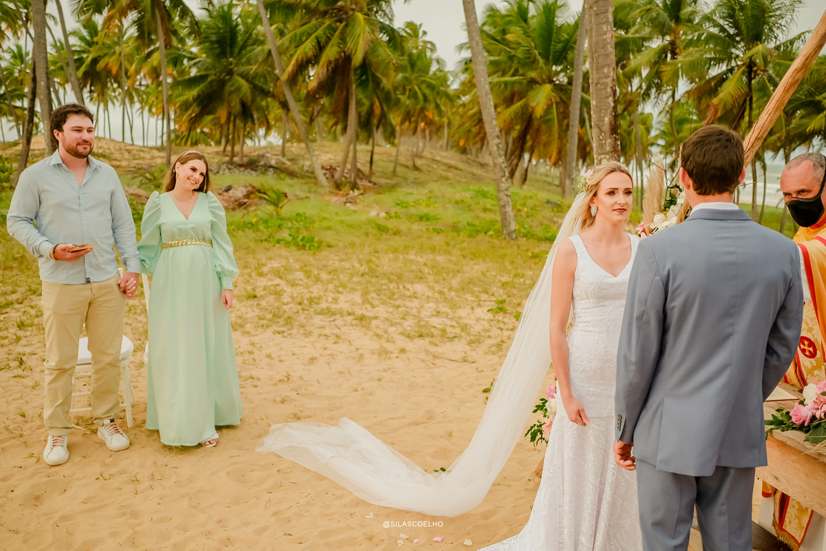 Esse foi um dos casamentos mais apaixonantes que já tive o privilégio de registrar. A Jaque e André são um casal super tranquilo e alto astral que vieram lá do Rio Grande do Sul para realizar o sonho de casar na Bahia e em frente ao Mar. O Dia foi tão lindo que teve chuva de benção assim que encerrou a cerimônia e um por do sol lindo de presente tbm. Quem acompanhou a cerimônia foram seus primos que estavam super emocionados tbm!