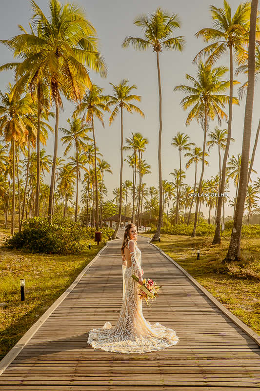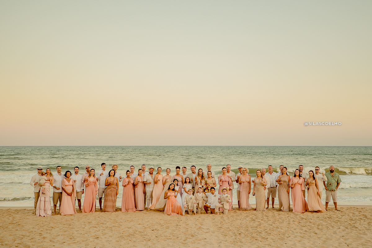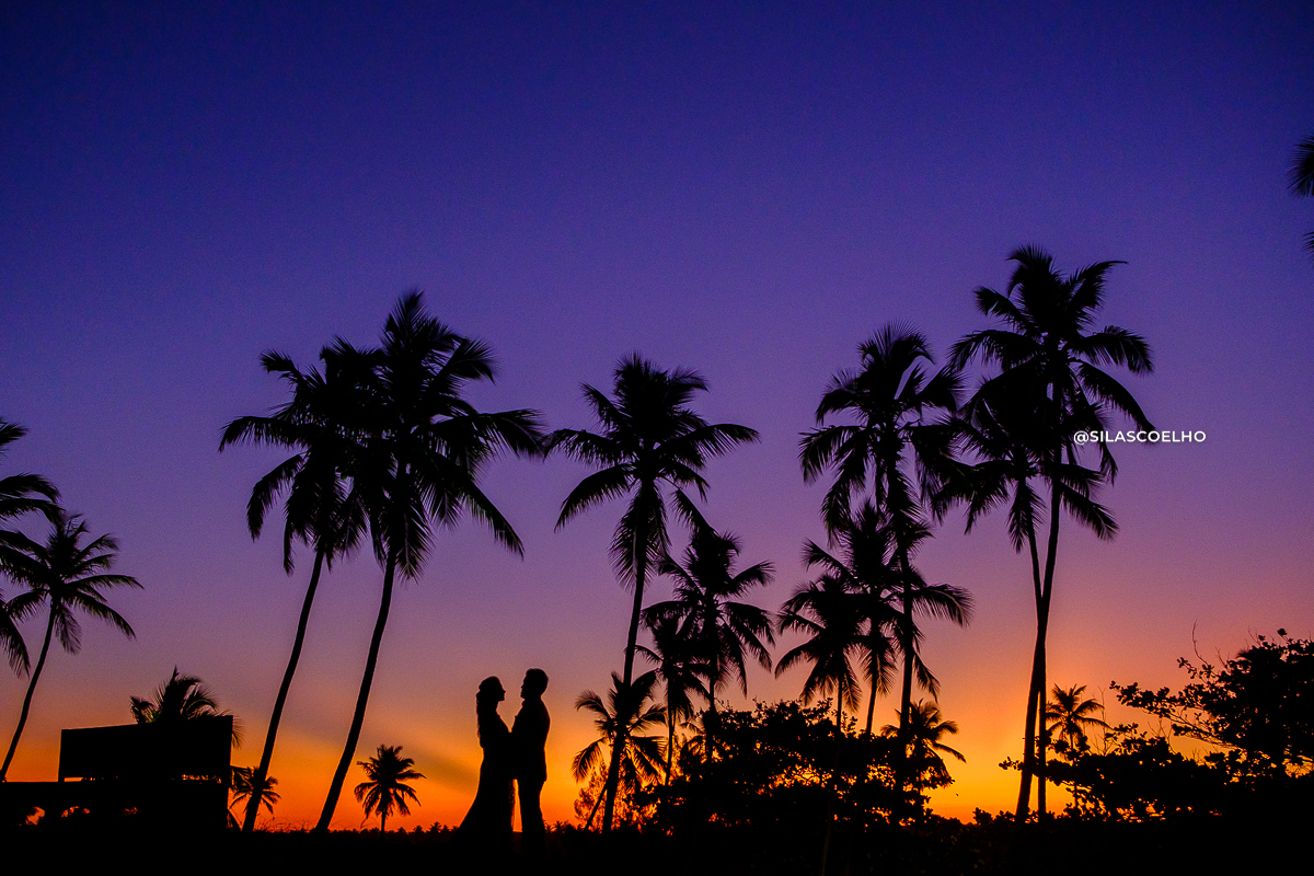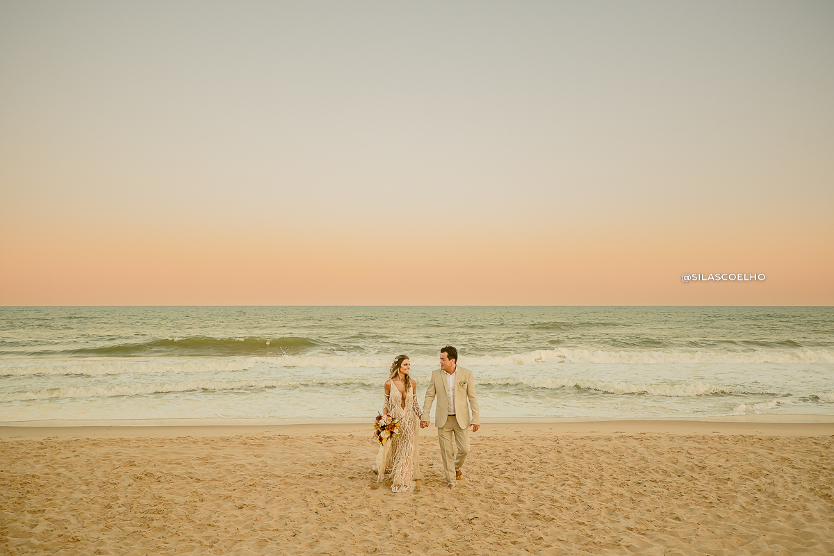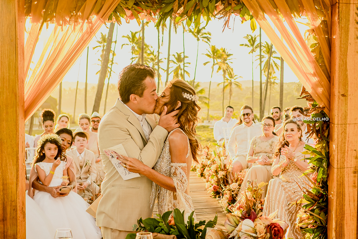 Foi um casamento lindo em um cenário paradisíaco, sob a costa dos coqueiros, com pé na areia, frente ao mar e ao pôr do sol!