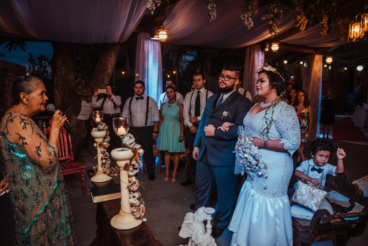 Dentre as coisas legais que aconteceram nesse casamento, muitas coisas foram feitas pela Petita, desde catar folhas secas de imbaúba no seu próprio quintal, passando pelo buquê da noiva e os deliciosos charutos de parreira, até bordar o tapete que foi colocado na "nave" para o cortejo de entrada.